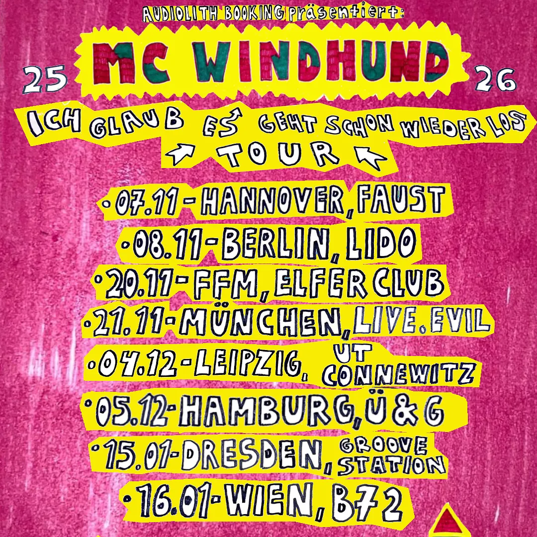 MC WINDHUND, gebürtiger Hamburger und talentierter Singer-Songwriter, ist einer der vielversprechendsten Newcomer in der deutschen Musikszene. Seine Musik umfasst eine beeindruckende Bandbreite an Genres, darunter Trap, Hip-Hop, Jazzfunk, Akustik, UK Drill, UK Garage, Pop/Rap, Alternative, Folk, Indie und Neue Neue Deutsche Welle. Zusammen mit seinem Produzenten Finn Barth bildet MC WINDHUND ein unschlagbares Duo. Ihre Leidenschaft für Musik und ihre Fähigkeit, sich in verschiedenen Genres auszutoben, führt zu innovativen und fesselnden Sounds. Ihre Songs strahlen 100% Herz und Authentizität aus, was sich sowohl im Songwriting als auch auf der Bühne zeigt. MC WINDHUNDs Performances sind eine emotionale Reise, die von gefühlvollem Gesang bis hin zu mitreißendem Rap reicht. Die beiden Künstler machen keine halben Sachen, und das Publikum spürt die Intensität und Ehrlichkeit ihrer Musik bei jedem Auftritt. Mit ihrer Energie und ihrem Willen, neue musikalische Horizonte zu erkunden, stehen MC WINDHUND und Finn Barth an der Spitze einer neuen Welle innovativer Künstler in der deutschen Musikszene.