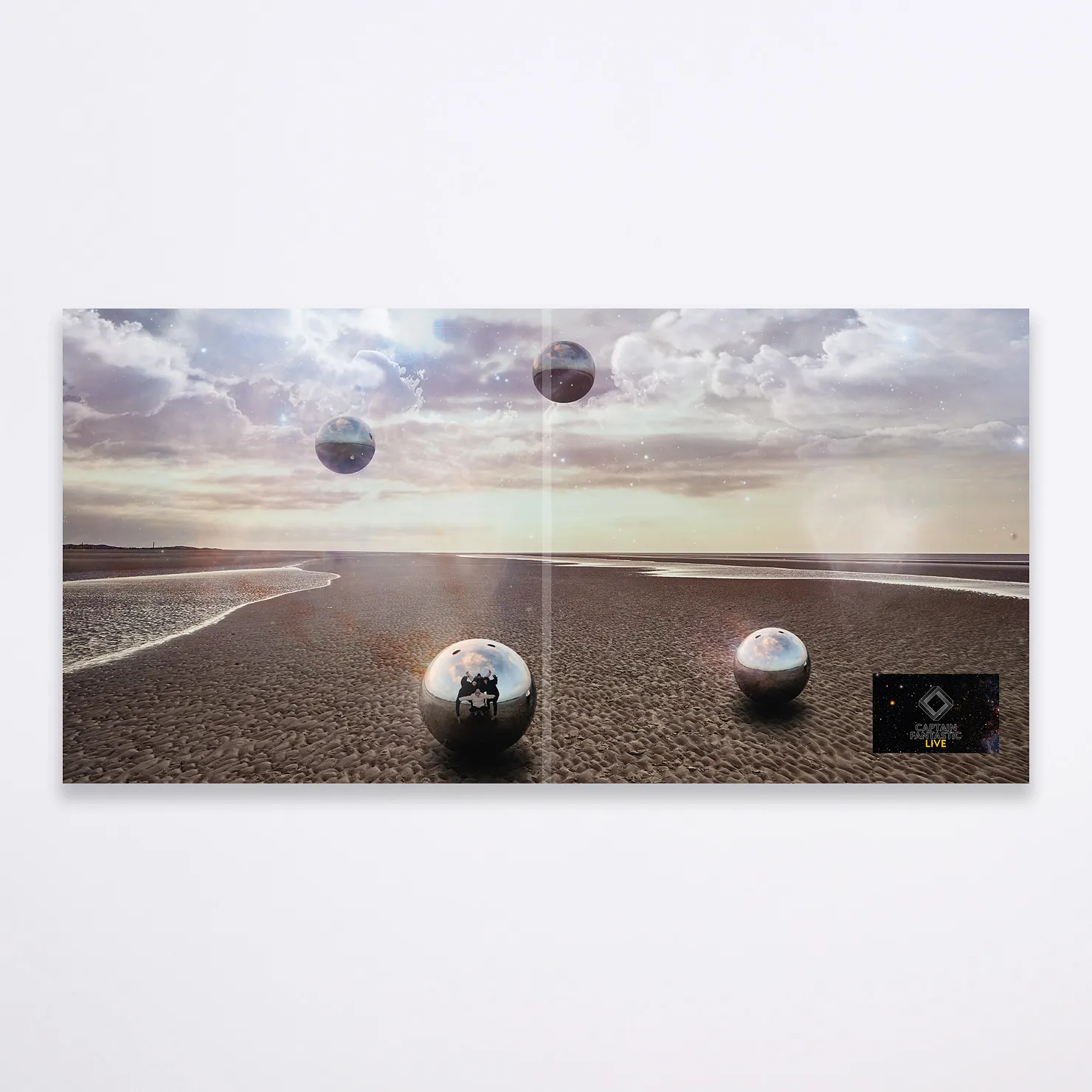 Das Captain Fantastic Album auf Vinyl in einem Special Gatefolder mit ausgestanztem Cover hinter dem sich ein Stück des original Bühnenvorhangs der Captain Fantastic Tour verbirgt.