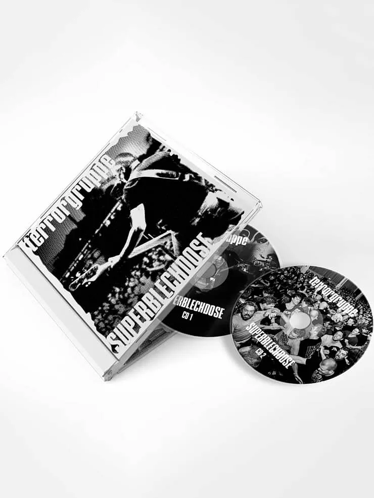 Die Menschen lieben ihre "BLECHDOSE", nicht nur die schmucke Verpackung, die Songsauswahl voller Hits, welche dem etwas träge gewordenen deutschsprachigen Punk seit 1993 neues Leben eingehaucht hatten, nicht nur der grossartige Sound von 2 Konzert-Recordings aus dem Jahr 2001, sondern auch die Tatsache, dass sie ihre TERRORGRUPPE zwar gerne zuhause auf der Anlage hören, aber sowas niemals an das orgiastische Erlebniss einer echten Liveshow heranreichen konnte. Dann kam die BLECHDOSE und schaffte es ganz locker und selbstverständlich, das subversiv-verstörende anarchistische Live-Erlebniss auf Konserve zu bannen wie keine Punk-Livescheibe je zuvor.